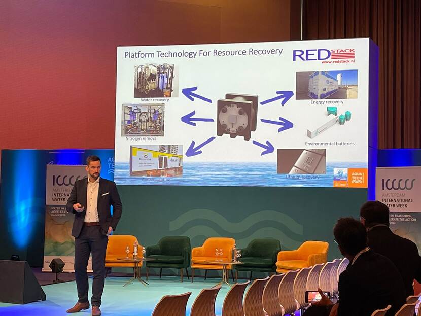 Ook aanwezig op AquaTech is het bedrijf REDstack uit Sneek. REDstack ontwikkelt de zogeheten RED-technologie, waarmee energie kan worden gewonnen uit 2 waterstromen met verschillend zoutgehalte, bijvoorbeeld op plekken waar een rivier de zee in stroomt. Een dergelijke energiebron is continu beschikbaar, duurzaam en eco-vriendelijk. Met haar technologie won REDStack op AquaTech een innovatie-award, vertelt Simon Grasman CTO van het bedrijf. ‘Dat is natuurlijk een mooie erkenning voor ons bedrijf, vooral in een tijd waarin de zoektocht naar duurzame energie wereldwijd grote uitdagingen oplevert.'