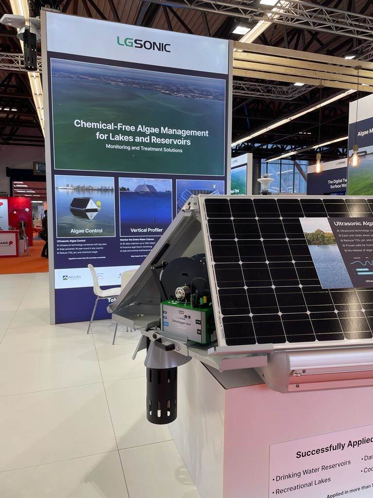 Even verderop staat LG Sonic uit Zoetermeer, een bedrijf dat door een combinatie van het monitoren van waterkwaliteit en het verzenden van golven van ultrasoon geluid schadelijke algengroei kan tegengaan in oppervlaktewater. Anne Gierveld van het bedrijf vertelt: ‘Vervuiling of opwarming van het water zorgen voor een overvloed aan nutriënten in het water. Dat leidt tot teveel algengroei. Algen zijn op zich gezond voor zoet water, maar een overvloed is slecht voor de kwaliteit van het water.’