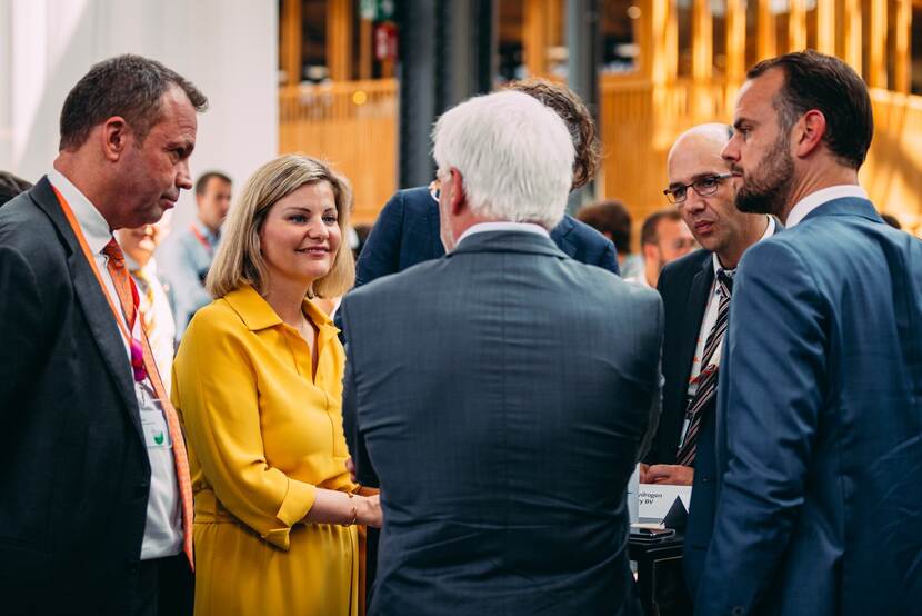 ‘Onze beide landen willen ook belangrijk zijn in de Europese maakindustrie van groene waterstof’, gaat ze verder. ‘Nederland heeft de ambitie om een centrale positie te verwerven in de internationale waterstofmarkt. Samen optrekken met omliggende landen is daarbij essentieel.’ En nog zo’n voorbeeld, zegt ze: ‘In Nederland beschikken we inmiddels over goede laadinfrastructuur voor elektrische voertuigen. België is met een flinke inhaalslag bezig. Ook daarin kunnen we elkaar versterken.’