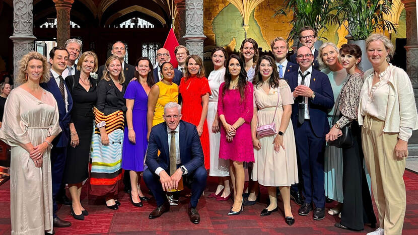 Ook Robin noemt het staatsbezoek een kroon op haar werk. ‘Tijdens de ontvangst van de Nederlandse Gemeenschap stond ik samen met mijn collega’s Wouter Frencken en Pascal de Veylder aan het roer om ervoor te zorgen dat alles goed werd opgebouwd, dat de bloemen uit Nederland geleverd werden en de registratiebalie netjes ingericht werd, zodat we iedereen goed kunnen ontvangen. We hebben onze collega’s, de gasten en de pers via de passade – zo heet dat dan – begeleid, zodat iedereen het Koningspaar de hand kon schudden. Ik vond het zo bijzonder dat ik dit mocht doen in mijn rol als managementondersteuner.’
