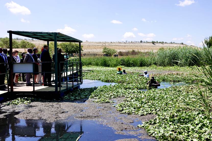 Het Koninklijk Paar is vanmorgen aangekomen op het militaire vliegveld in Pretoria. Na aankomst stond een bezoek aan het Blesbokspruit natuurreservaat als eerste op het programma. Het natuurreservaat, ook wel een wetland reserve genoemd, is ongeveer 2.000 hectare groot en biedt een thuis aan meer dan 250 vogelsoorten. De ontwikkleingen in het natuurreservaat zijn een goed voorbeeld van de samenwerking tussen Nederland en Zuid-Afrika in de watersector.