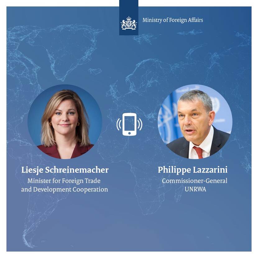 Minister Schreinemacher vertelt op X dat ze vandaag commissaris-generaal Lazzarini van UNRWA (United Nations Relief and Works Agency for Palestine Refugees in the Near East) sprak over de humanitaire situatie in Gaza.