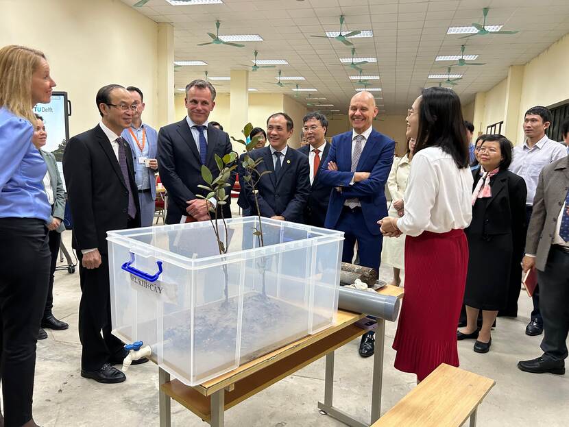 Nieuwe aanplant van jonge mangroves is een oplossing, maar voor die nieuwe bossen moeten de omstandigheden ideaal zijn. Het nieuwe Mangrove Living Lab, ontstaan uit een samenwerking tussen de Thuyloi University in Hanoi en de Technische Universiteit Delft, gaat hier de komende jaren aan werken. Het Lab werd afgelopen week aan minister Harbers getoond als onderdeel van de economische missie aan Vietnam.
