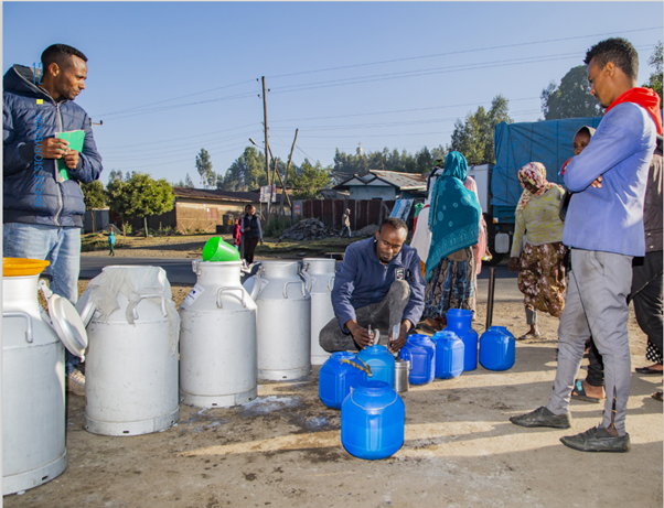Ethiopische zuivelboeren die ondersteuning krijgen via het BRIDGE-programma.