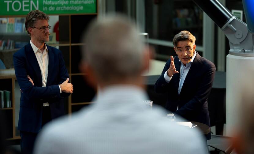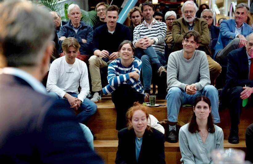 Dan is er alle ruimte voor interactie met de aanwezigen. Een vraag uit het publiek gaat over waar in deze lastige tijden hoop te vinden is? Christiaan: ‘Hele goede vraag, want we zien ook nog steeds goede dingen gebeuren. Bijvoorbeeld de gezamenlijke internationale steun aan Oekraïne na de inval van Rusland en dat het stand heeft gehouden. Of hoe we in Europa samen vaccins hebben geregeld in de coronacrisis.’