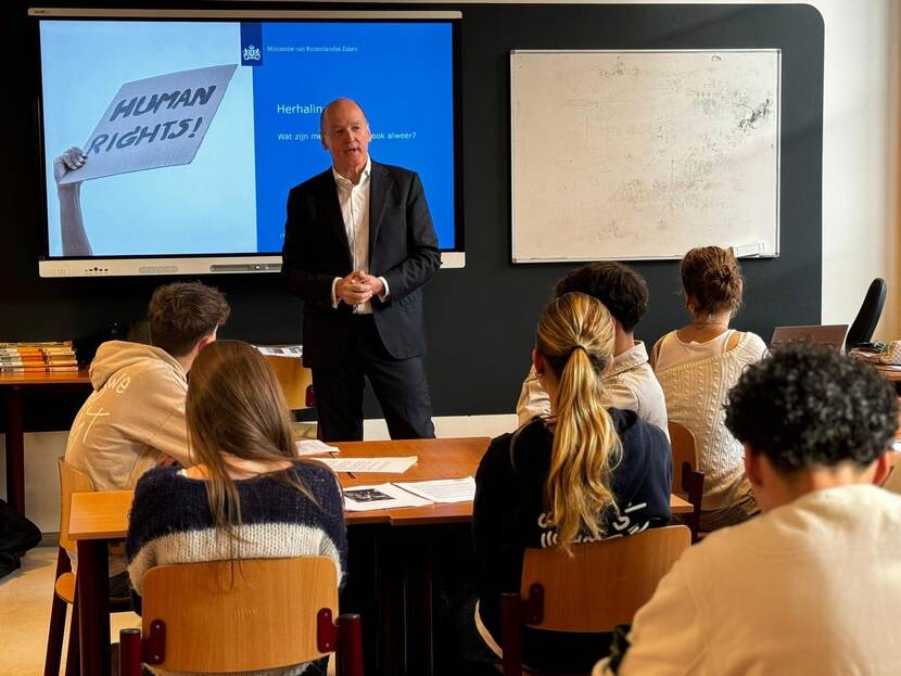 ‘Ik werk langs drie sporen. Ik reis naar andere landen om met regeringen en organisaties over mensenrechten te praten. Omgekeerd ontvang ik ook buitenlandse gasten in Nederland om datzelfde gesprek hier te voeren. Daarnaast zet ik me binnen internationale organisaties, zoals de VN en de EU in om mensenrechten hoog op de agenda te houden.