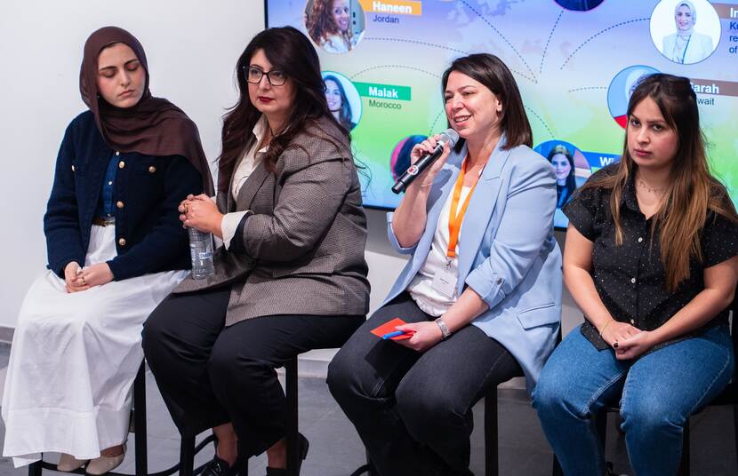 Bij Madraj trainen we (jonge) vrouwelijke politici, journalisten en influencers uit de hele Arabische regio. We willen dat ze hun rol in vredesopbouw begrijpen en pakken, dat ze zich bewust zijn van hun voorbeeldfunctie en hoe hun werk hele gemeenschappen kan beïnvloeden. Vooral welke impact influencers op de jongere generaties heeft, die is gigantisch.’
