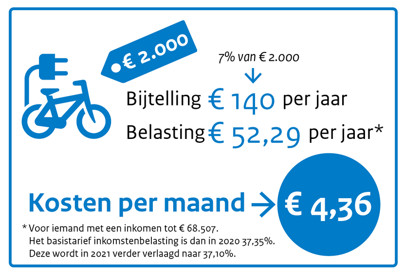 De werkgever betaalt de fiets en meestal ook de kosten voor onderhoud en reparatie. Wel krijgt de werknemer te maken met een bijtelling bij het salaris. Uiteindelijk betaalt de werknemer daardoor enkele euro’s per maand extra belasting.