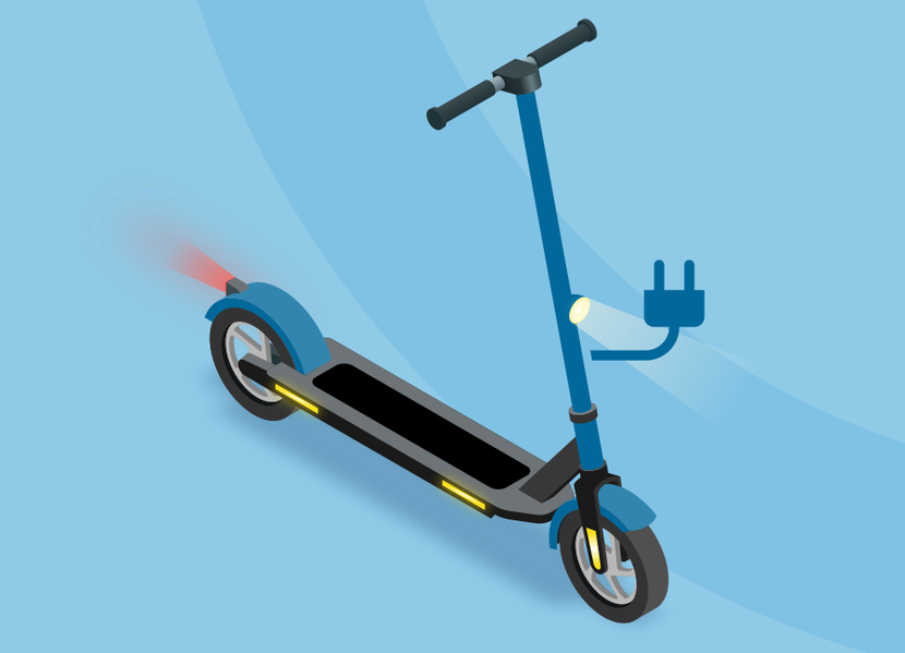 Een step met een elektromotor. De meeste elektrische steps zijn niet goedgekeurd. Is uw elektrische step (e-step) niet goedgekeurd? Dan mag u niet op de weg of stoep rijden.